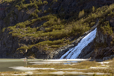The tiny little dots by the white frozen waterfall are people. That's how far away we were from the glacier. |