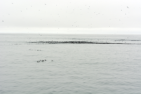 The black in the water is all birds. |