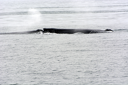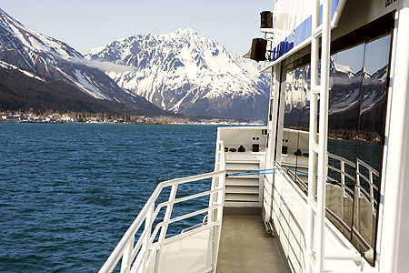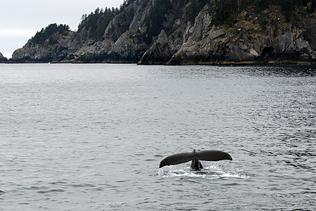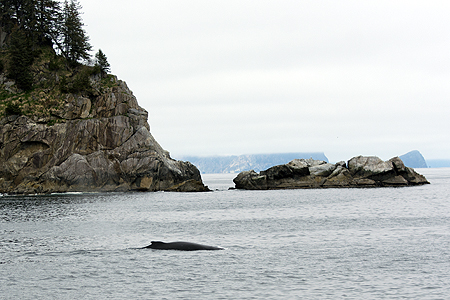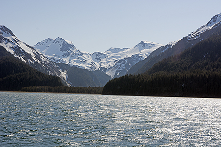 We couldn't get in close to the Aialik Glacier because of the ice. We got a long distance picture of it. |