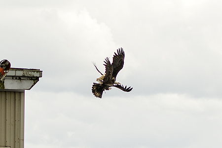 After all the fighting, the adult bald eagle still had the bird. You can see it in it's talons. |