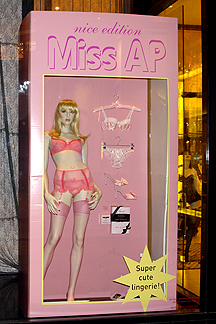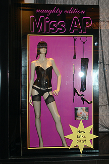 ![]() I love this lingerie store. They have the BEST window displays. This "doll" box says, "Now talks dirty!" |