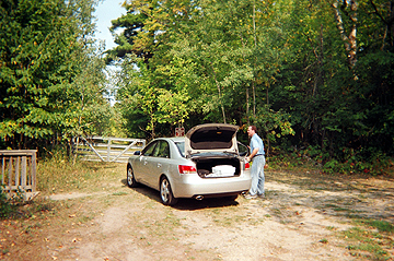 Mike's unpacking the lunch from the trunk. A cooler full of good stuff to enjoy! |