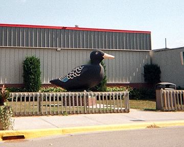 I had a project for work which sent me to Blackduck, Minnesota for a few days. This small town is located 163 miles northwest of Fargo, North Dakota. Blackduck sits at the northwest edge of the Chippewa National Forest: 1.6 million acres of forest lands, over 700 lakes, numerous trails and waterways, and home to the largest bald eagle breeding population in the lower 48 states. This big black duck was located in the Municipal Park. |
