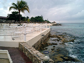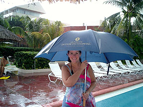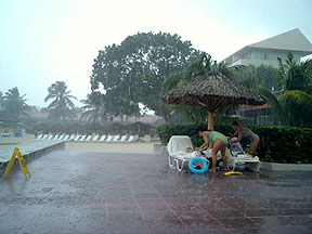 The storm didn't stop us from getting drinks by the pool. |