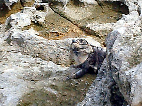 We went walking on the beach and saw this iguana sunning himself on the rocks. |