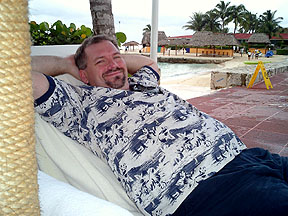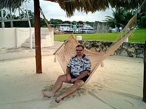 Bill stopped to relax on a hammock. |