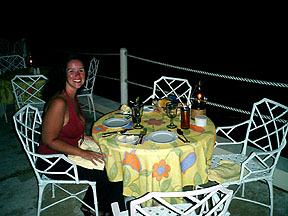 We had dinner outside by the ocean. |