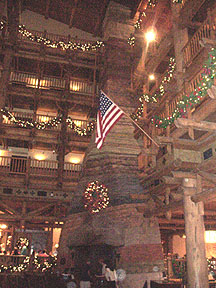 Laura, Tomas, Mom and Dad went back to the hotel. Gary, Bill and Kris wanted to go to Downtown Disney. Since there's no direct bus from the MGM to Downtown, we took a detour to the Wilderness Lodge Resort. |