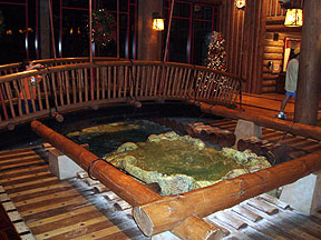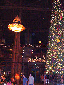 The resort was a big log cabin. The Christmas tree was beautiful. |
