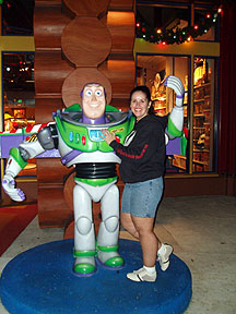 We finally made it to Downtown! Here's Kris with Buzz Lightyear. |