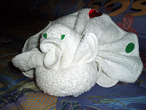 Back to the hotel. Our maid made is a cute little chick with a towel. |