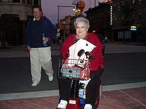 Here we are coming in to the park. Dad and I were trying to put some bags on Mom's chair and she sped off, almost making us fall. It was funny. |
