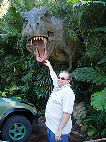 Aw! Bill's petting the cute T-Rex. |