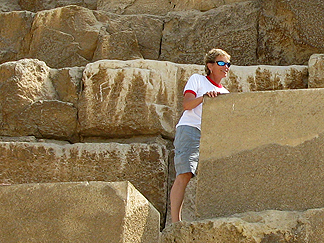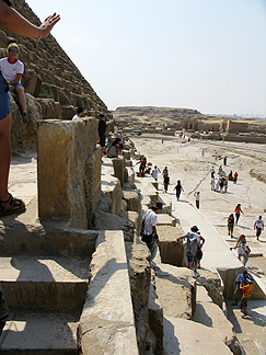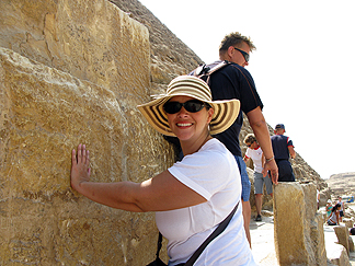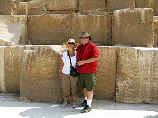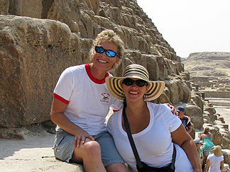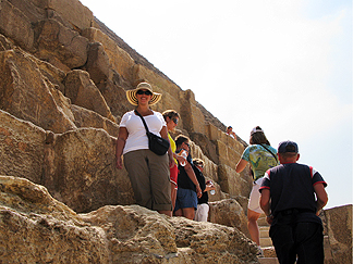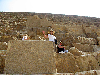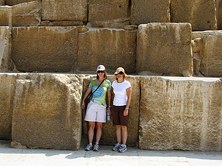 ![]() Beth and Tonya in front of the base of the pyramid. You can see how huge the stones are! |
