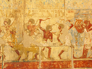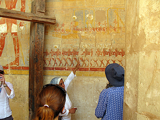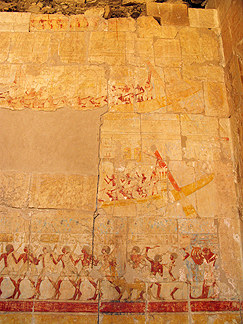 ![]() On the wall, the representations of the trees she brought back from Punt. The same trees who's remnants are at the entrance. |