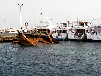 ![]() This cracked us up. There were several ships in the harbor that were rusted and either half under or all the way under water. |