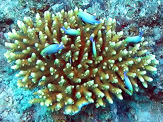 ![]() Pretty little blue fish in coral. |