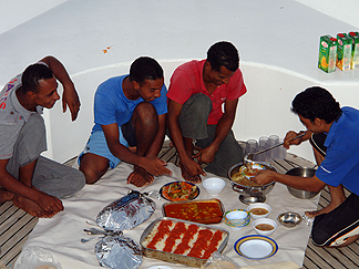 ![]() The crew breaking their fast after sundown. |