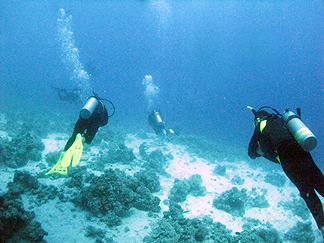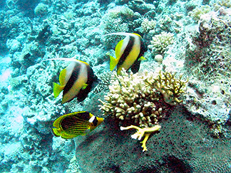 ![]() Two Pennant Fish and a Striped Butterfly Fish. |