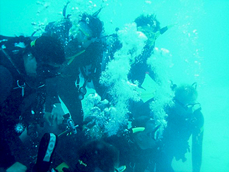 ![]() We didn't take photos of the pyramid dive but Kim did and she was nice enough to share! Here we are starting the pyramid. |