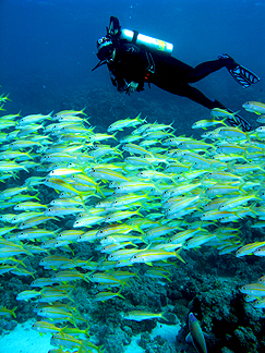 ![]() Kris with a school of Goat Fish. |