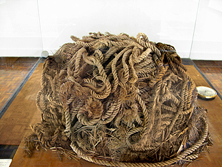 ![]() A cross-section of how they lashed the wood together with ropes. |