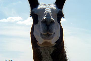 First, this Llama wouldn't move out of the road. Once he did, he wasn't too interested in food. He just stared. |