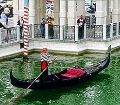 In front of the Bellagio is a huge lake where you can get a ride on a real gondola. |