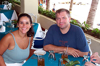 The vacation started out a little less than ideal. We woke up an hour and a half too early because someone (not Kris) didn't check our flight time and just went for the time he thought we left. Then we got to the airport and our flight was cancelled because the incoming plane was delayed by weather and immigration didn't want to wake up early and come in to meet the plane ( the same thing happened to Kris' folks on the way back) and there were 5 people on the plane. |