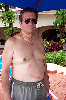 The next day, his "stripes" were redder. After Mom