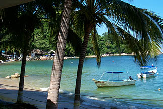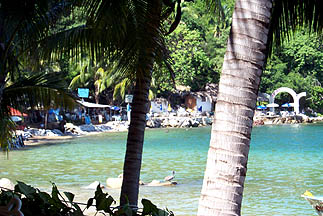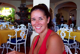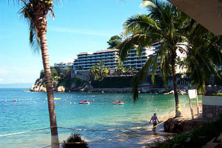 This is what the beach looked like in front of the hotel. We were a little disappointed because there were supposed to be little palapas (huts) out there but the ocean almost came up to the steps to the hotel. We found out that a year ago, a storm washed about 50 feet of beach away. They're trying to figure out how to fix it. |