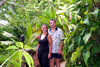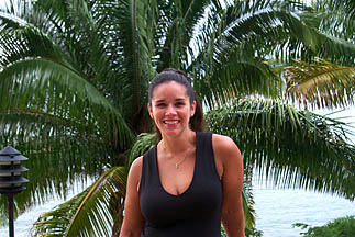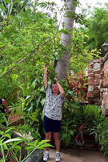 Kris by the top of a palm tree. |