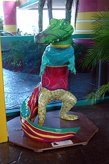 Lucky alligator in the lobby. The paint was worn away from his nose from people touching him. |