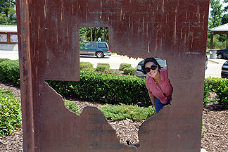 Kris checking out some of the brochures we picked up at the welcome center. |