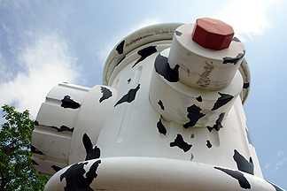 It was built in Anaheim, CA by Disney for the re-release of Disney's animated movie, 101 Dalmatians. When it was built it was the world's largest fire hydrant. It found a permanent home in Beaumont. It stands in front of the firefighter's museum. You can see the building in this picture. |