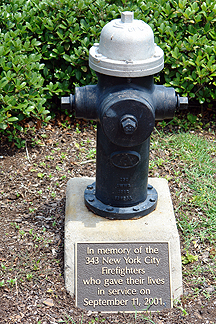 This black and silver hydrant in a memorial to the 343 New York City Firefighters who died on September 11th. |