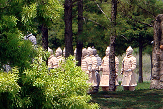 We could see more terra-cotta warriors through the trees. |