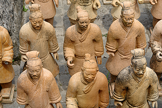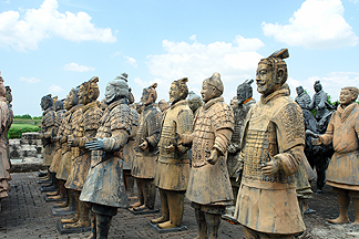 They were built to help Emperor Qui fight battles in the afterlife. They're hollow so when the soldiers died, their soul could inhabit the statue. Each statue was made to resemble each individual soldier so their soul would know which statue to inhabit. |