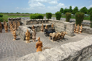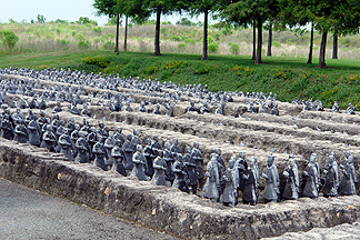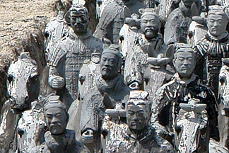 Terra-cotta horses and even chariots were buried with the soldiers. |