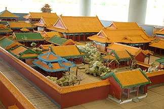 There were SO many buildings I can't remember what they were all for. They did tell us as a general rule, the green roofs were where family and concubines lived. The orange roofs were general buildings and temples. |