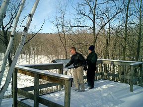 Then we went to the Kettle Moraine Forest. Steve and John are reading about the kettle. |