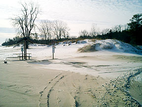 The state park had this beach on Lake Michigan. It was so odd to see snow on a beach. |