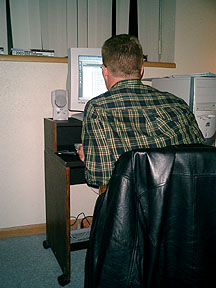 Back to the plant. John checked his e-mail wile we waited for the press to be ready. |