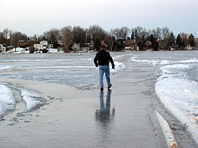 We went to see Random Lake. John ran out on to the ice to show us it was frozen. |