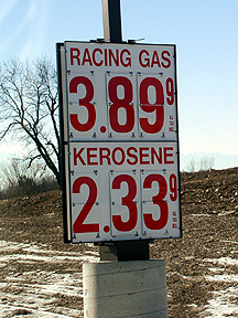 We stopped for gas. Most of us had never seen Racing Gas and Kerosene for sale at a gas station. |