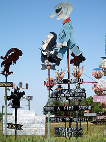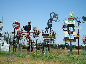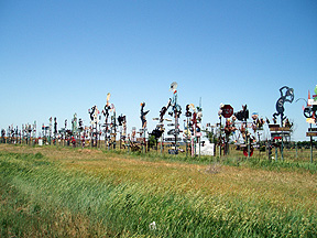 When we were passing through Mullinville, we happened upon these sculptures. They're the "Sculptures Blown by the Winds of Politics." |