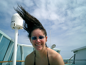 We were going about 22 knots in to some VERY strong winds so, it was a little windy on the upper deck. |