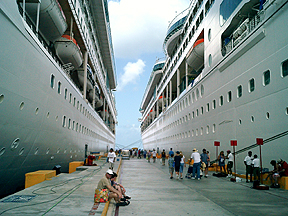 Around lunch time we disembarked to go eat lunch. The Enchantment of the Seas was next to our ship. |