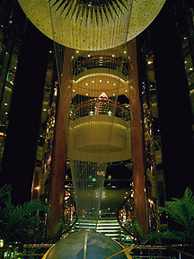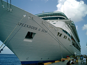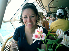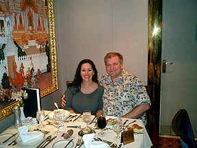 The last day at breakfast. We saw several dolphins swimming beside the ship. |