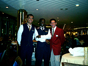 Our waiter, Albert, with our steward, Marvin and the head waiter, Armando. |